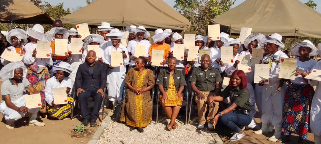 V prvi polovici izvajanja projekta je bil v okrožju Lusangazi uspešno izveden drugi in tretji sklop izobraževanj na področju čebelarstva, namenjen ženskam in mladim. Skupno 100 udeleženk in udeležencev je v letu 2025 pridobilo temeljne in dodatne čebelarske veščine, od pravilne postavitve čebelnjakov, naselitve čebeljih družin, skrbi za zdravje čebel do uvodnega usposabljanja o točenju ter predelavi medu. Izobraževanja so potekala v tesnem sodelovanju z ADRA Zambija, Fakulteto za gozdarstvo (Zambian Forestry College), Kmetijskim inštitutom Slovenije ter Ekološkim čebelarstvom Metelko. Udeleženci_ke so bili razdeljeni v tri skupine in vsak modul je trajal po štiri dni, kar je omogočalo poglobljeno praktično delo. Izvedene so bile tudi specializirane delavnice o prehrani in boleznih čebel ter pripravi sladkornega sirupa, ključnega v obdobjih pomanjkanja paše. Ob zaključku izobraževanj je vseh 100 gospodinjstev prejelo certifikat stopnje III, ki ga priznava Zambian Forestry College, ter 100 Bee Start-Up Kitov, kar je preseglo prvotno načrtovano število prejemnikov_ic. V tem času je bilo gospodinjstvom razdeljenih tudi 500 čebelnjakov ter vzpostavljenih prvih 20 od skupno 100 senzorjev za spremljanje temperature in vlažnosti v panjih, za katere je partner Lokacom razvil namensko programsko opremo.