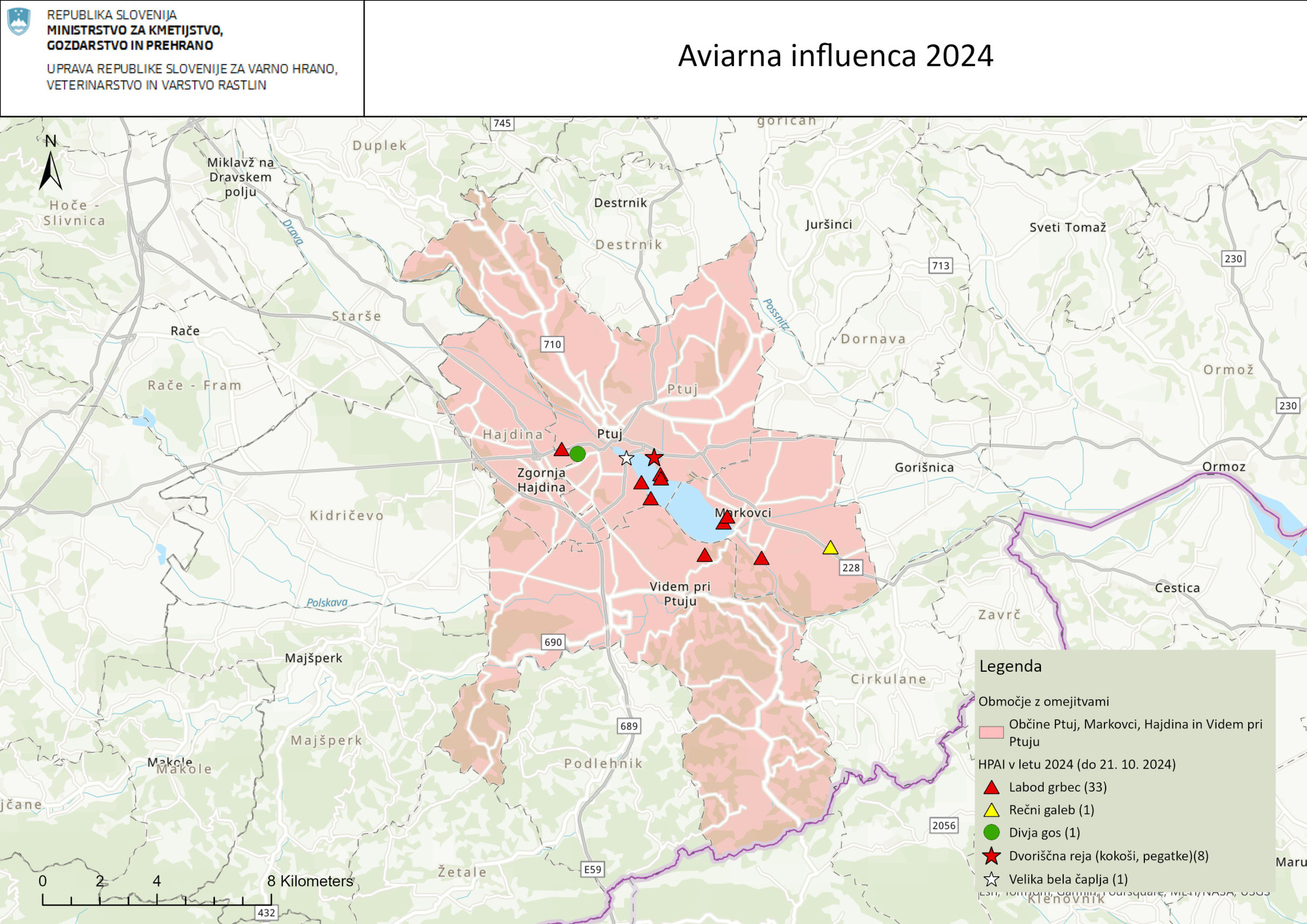 Na celotnem območju Slovenije veljajo priporočila za zmanjšanje tveganja prenosa virusa z divjih ptic na perutnino in ptice v ujetništvu, zato rejce perutnine in ptic v ujetništvu pozivamo, da jih dosledno upoštevajo.