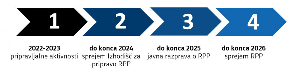 Razvojne regije morajo pripraviti in sprejeti regionalni prostorski plan do konca leta 2026 oziroma do 1. januarja 2027, zato so aktivnosti za proces priprave prve generacije regionalnih prostorskih planov predvidene v obdobju od 1. januarja 2023 do 30. junija 2027.