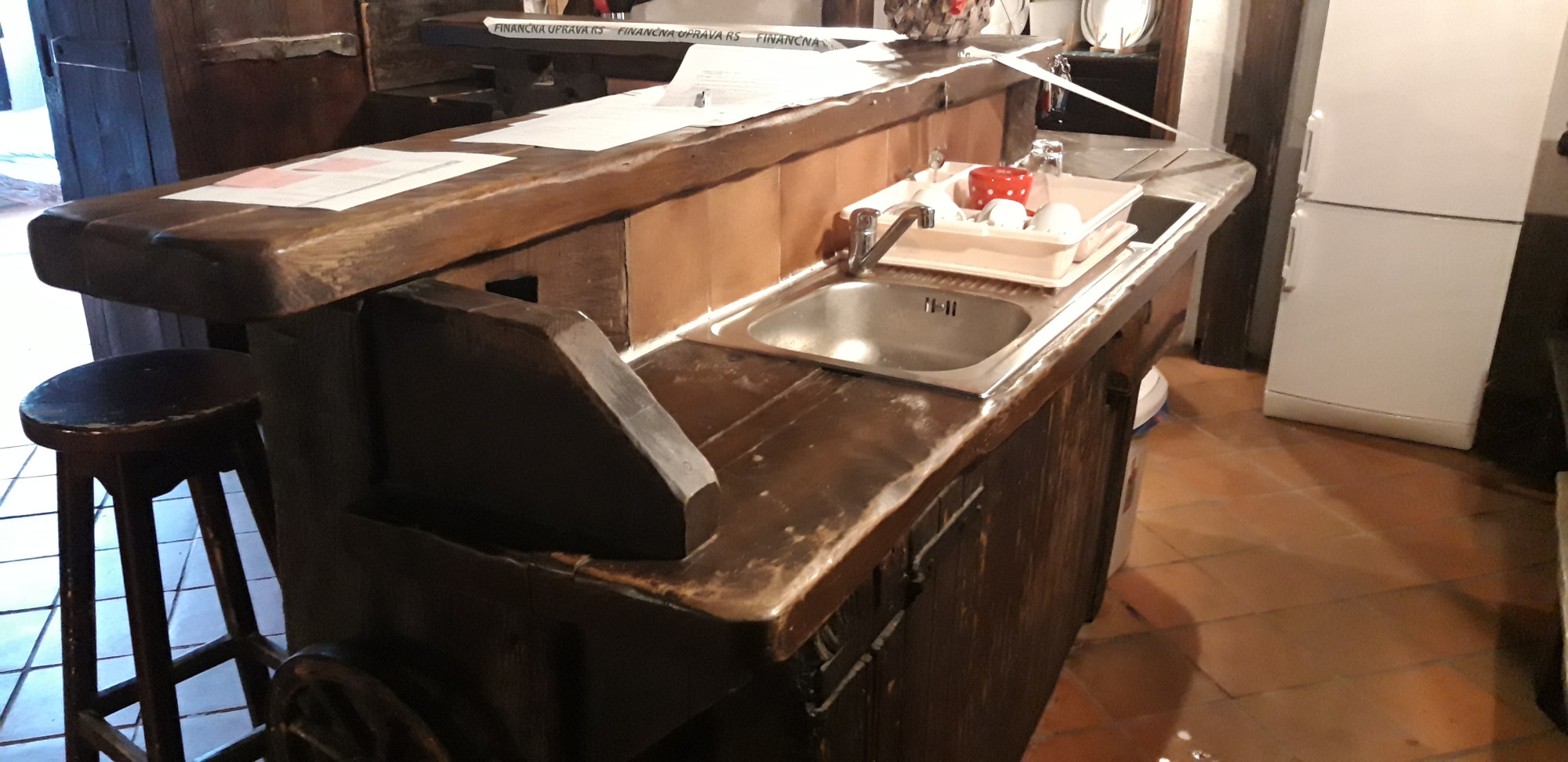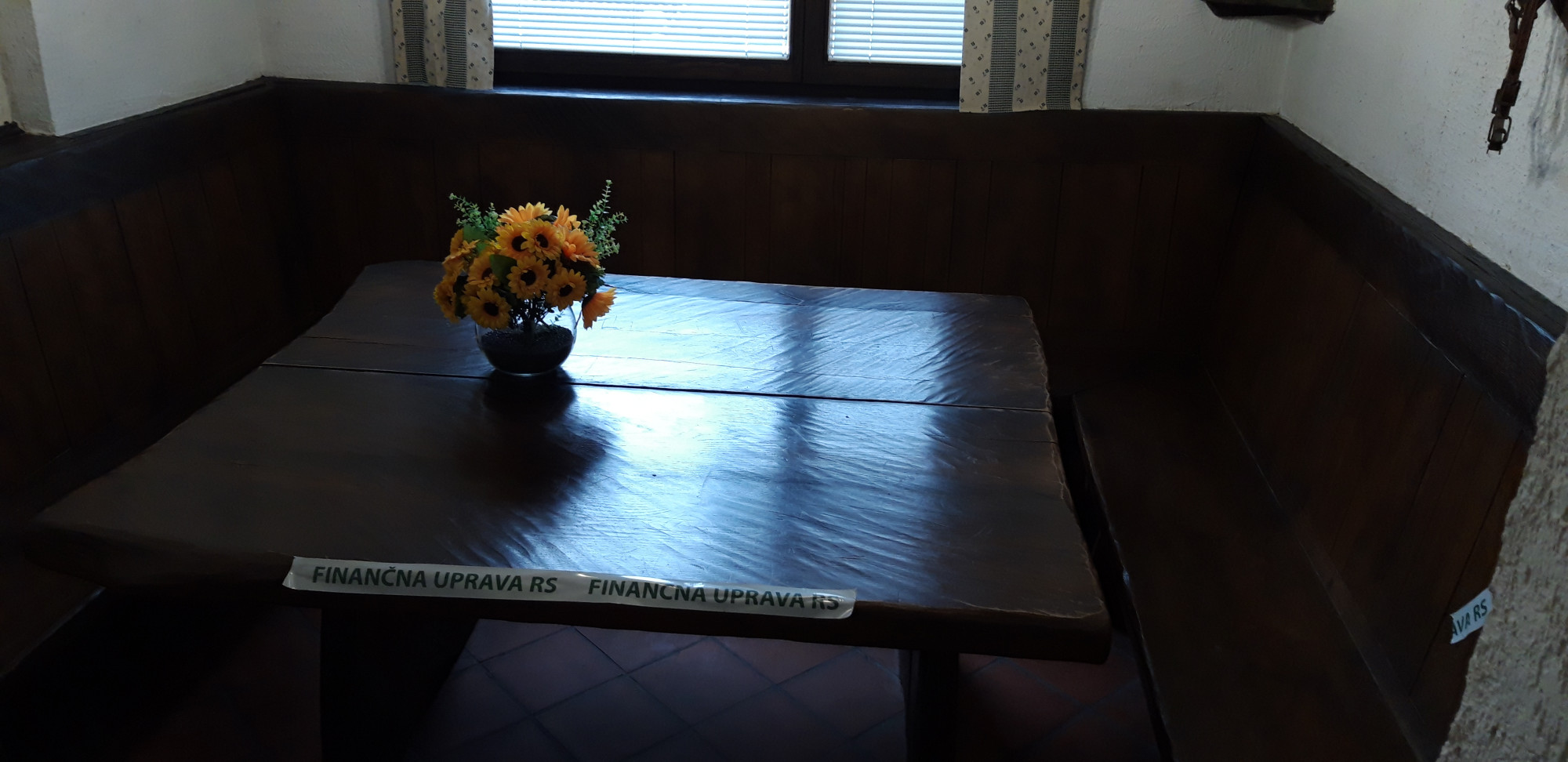 Oklic 1. javne dražbe za separe z mizo 3 x 3m, peč - kamin, točilni pult (komplet s 4 stoli); izklicna cena 3.000 EUR