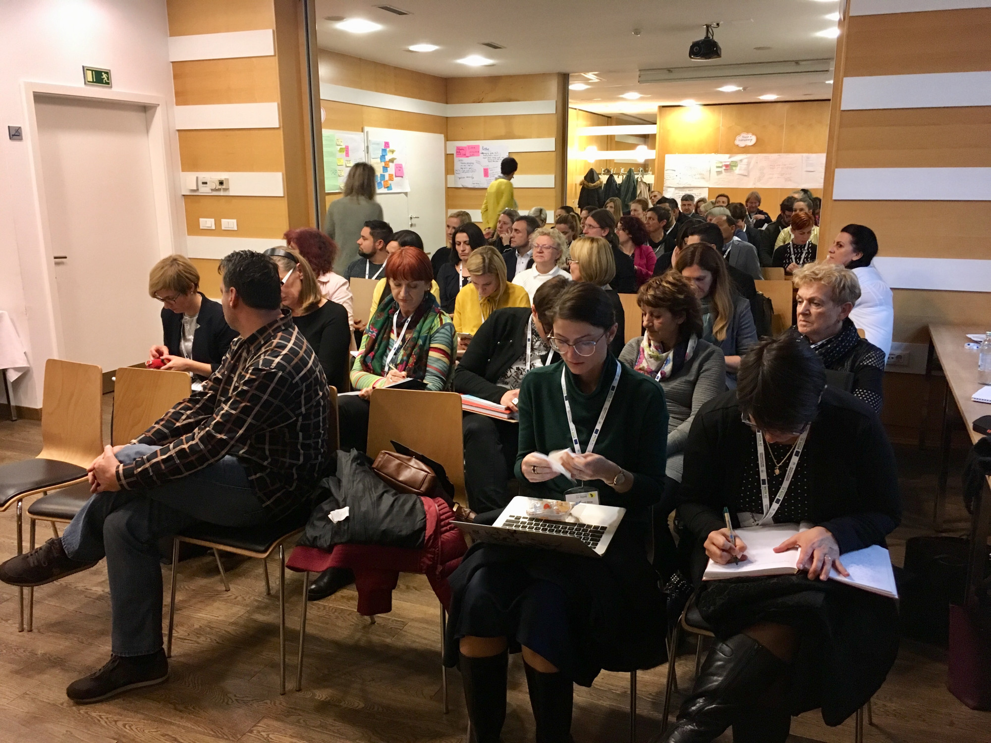 Udeleženci dogodka na temo oblikovanje izhodišč za pripravo NPUR za obdobje 2021-2030 na področjih vzgoje in izobraževanja, zaposlovanja in socialnega vključevanja ter zdravstvenega varstva, 26.11.19 | Avtor: Andrea Celija