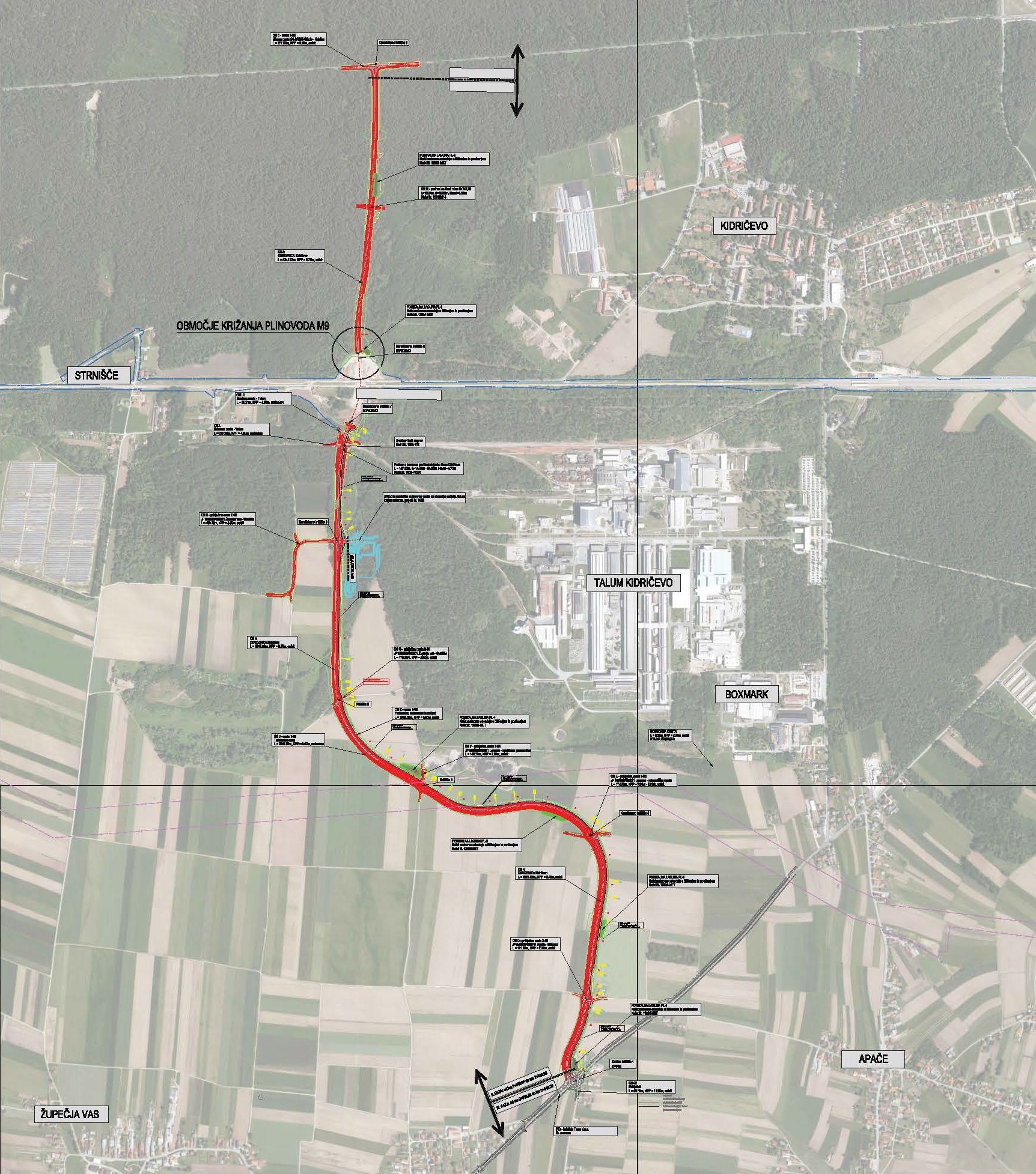 - novo navezovalno cesto v dolžini 1.360 metrov skupne širine 9,50 metra s prometno opremo in signalizacijo,