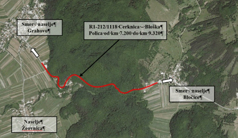 Projekt obsega rekonstrukcijo 2,12 kilometra državne ceste R1-212/1118 Cerknica–Bloška polica od km 7,200 do km 9,320. Cesta poteka po gričevnatem in strmem terenu, zato so na nekaterih delih predvidene tudi podporne konstrukcije – kamnite zložbe.