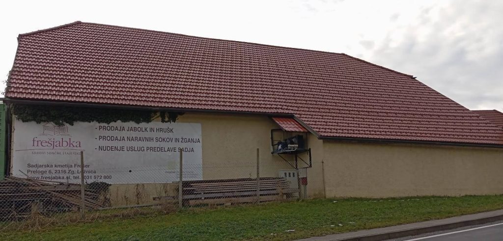 Na kmetiji Bojana Frešerja se poleg osnovne sadjarske proizvodnje ukvarjajo tudi s predelavo sadja. S prvim delom izvedene naložbe so v prvi vrsti zasledovali cilj zmanjšanja vplivov na okolje, kar nedvomno velja tako za nakup električnega viličarja kot za izgradnjo lagunske čistilne naprave.