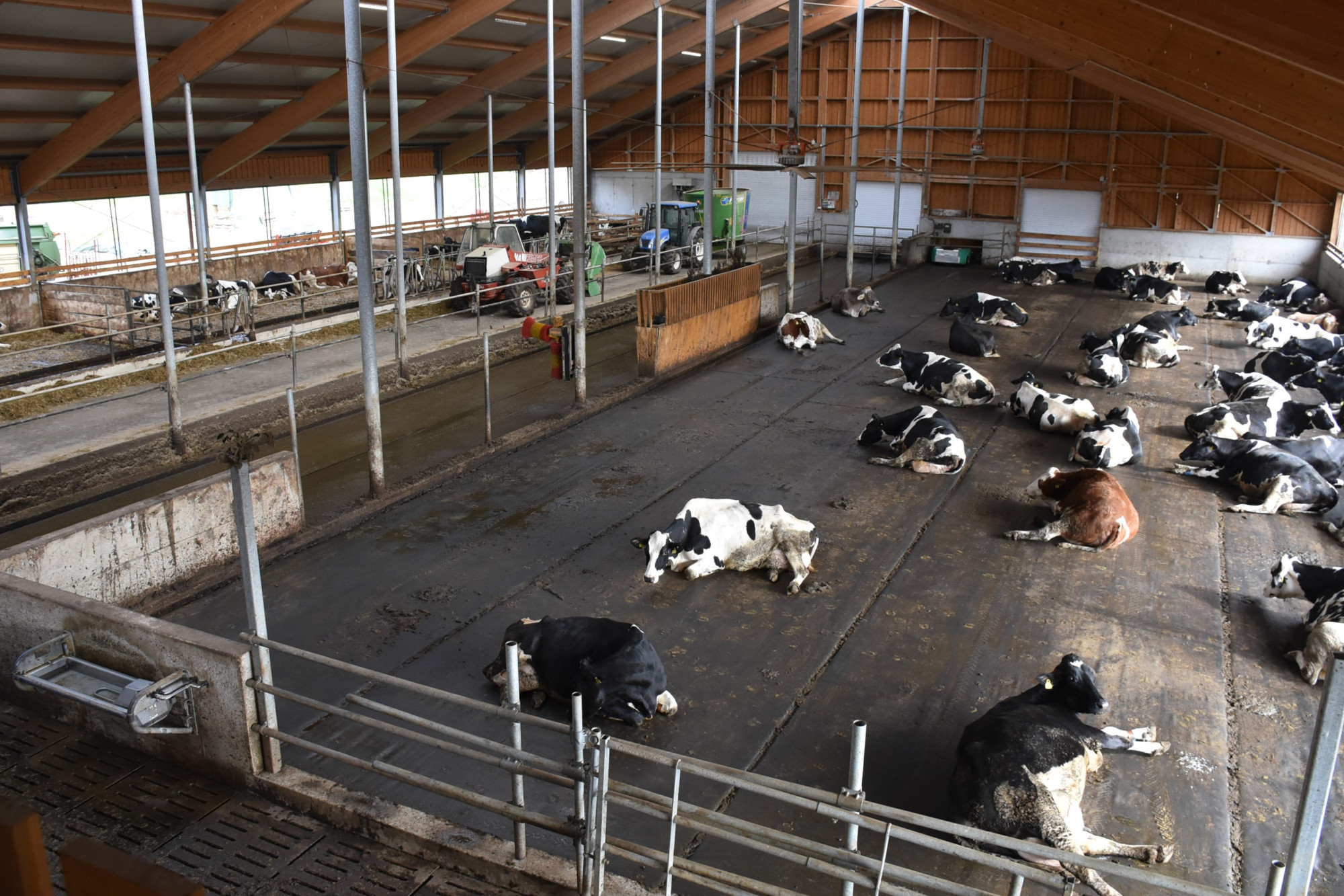Odgnojevanje je prav tako avtomatizirano. Poleg strgala in elevatorja za gnoj je v hlevu tudi robot za čiščenje tal na tekalni površini za krave.