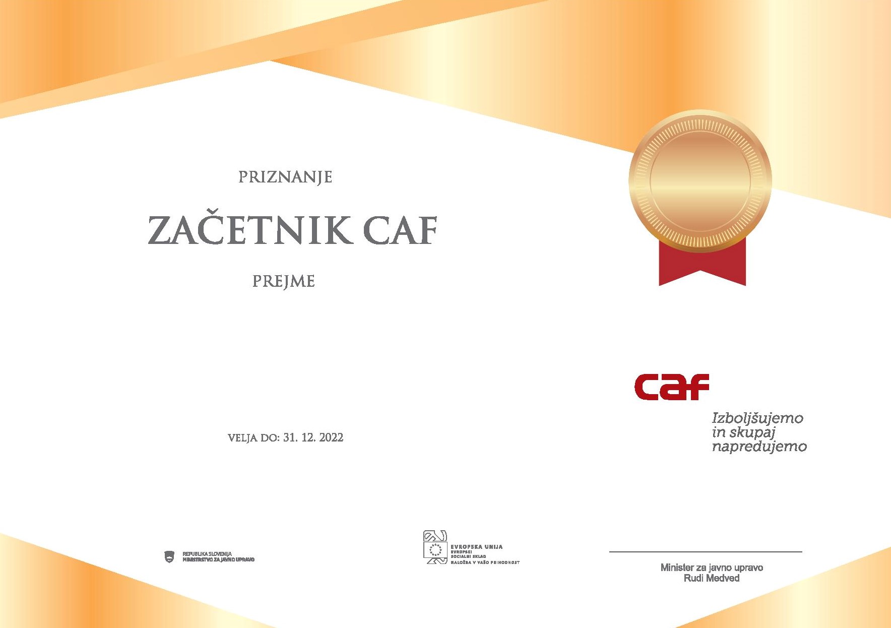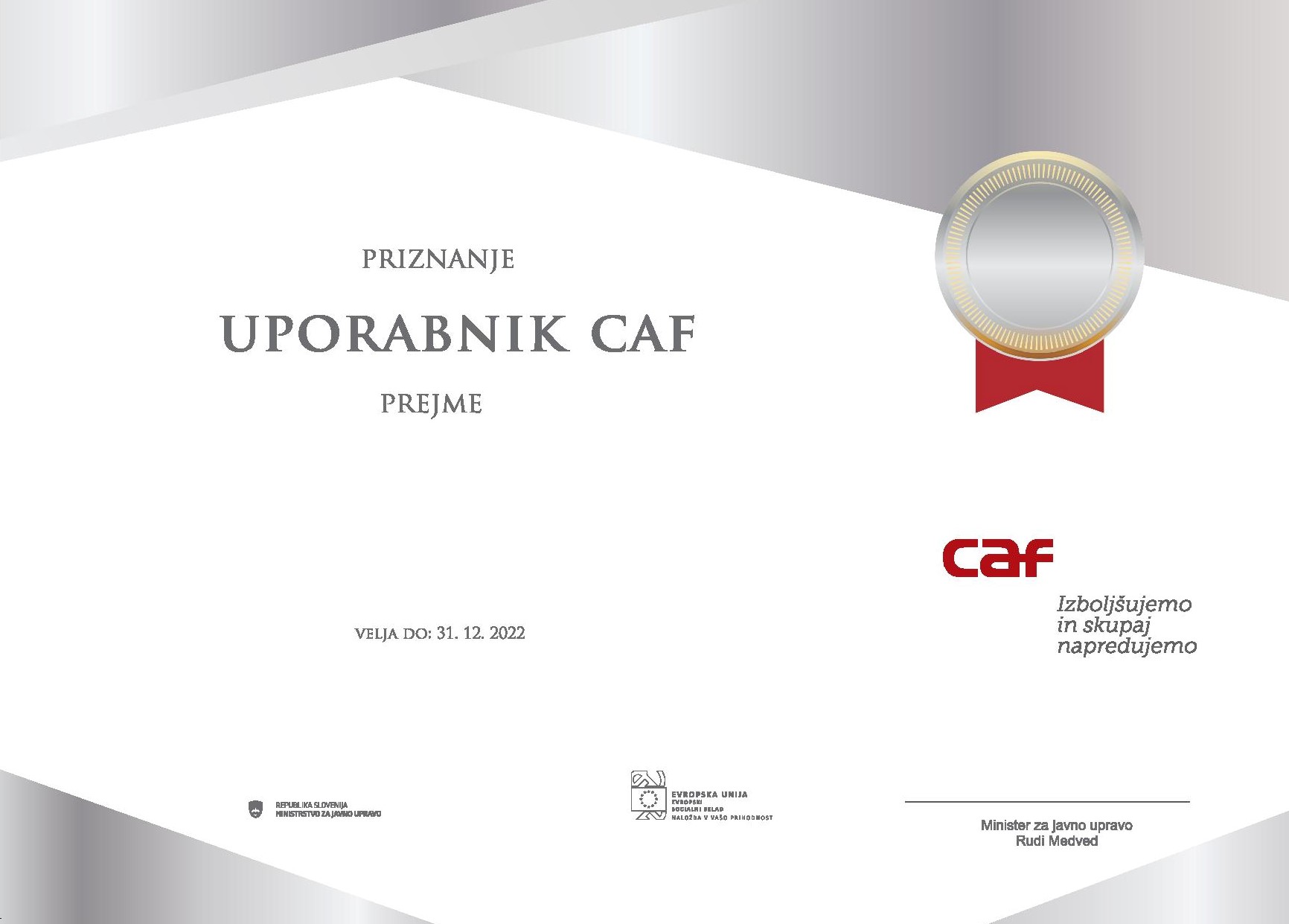 Uporabniki tako na podlagi Navodila o pridobitvi listin CAF prejmejo priznanje Začetnik CAF ali Uporabnik CAF. Slovesnost pripravimo enkrat letno, običajno v januarju, listine pa podeli minister za javno upravo.