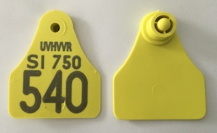 Ušesne znamke so rumene barve in štirioglate, ki jih po vstavitvi v uho ni več mogoče ponovno uporabiti. Na moškem delu ušesne znamke je natisnjena kratica UVHVVR ali MKGP in identifikacijska številka živali. Identifikacijska številka je sestavljena iz oznake države SI in šestmestne oziroma sedemmestne neponovljive številke. Na ženskem delu je lahko tudi druga vsebina, vendar to ne sme vplivati na čitljivost ID.